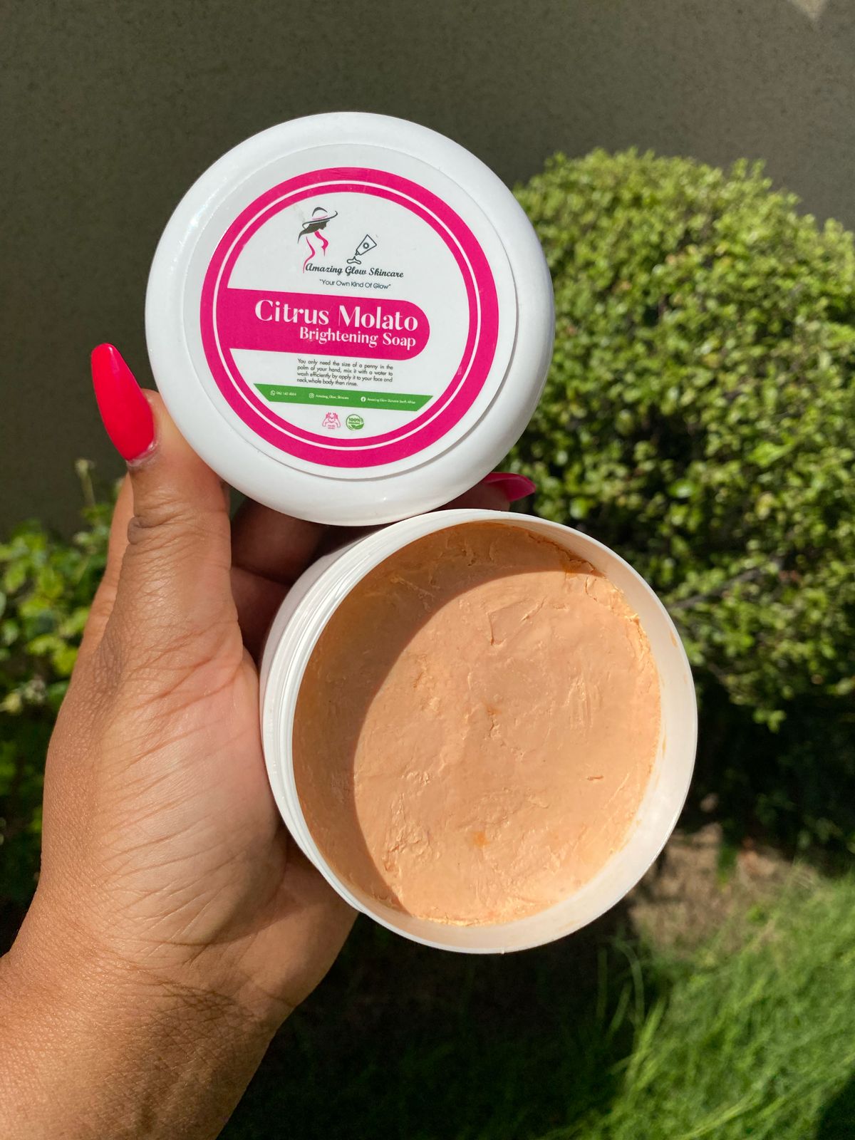 Citrus Molato brightening soap helps to evening out complexion by diminishing and preventing hyperpigmentation.